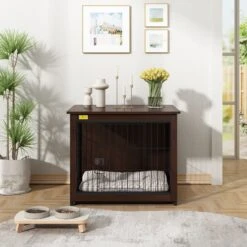 Coziwow Furniture Style Dog Crate With Removable Tray, Walnut