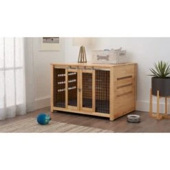 Unipaws Furniture Corner Dog Crate With Cushion, Weathered Grey