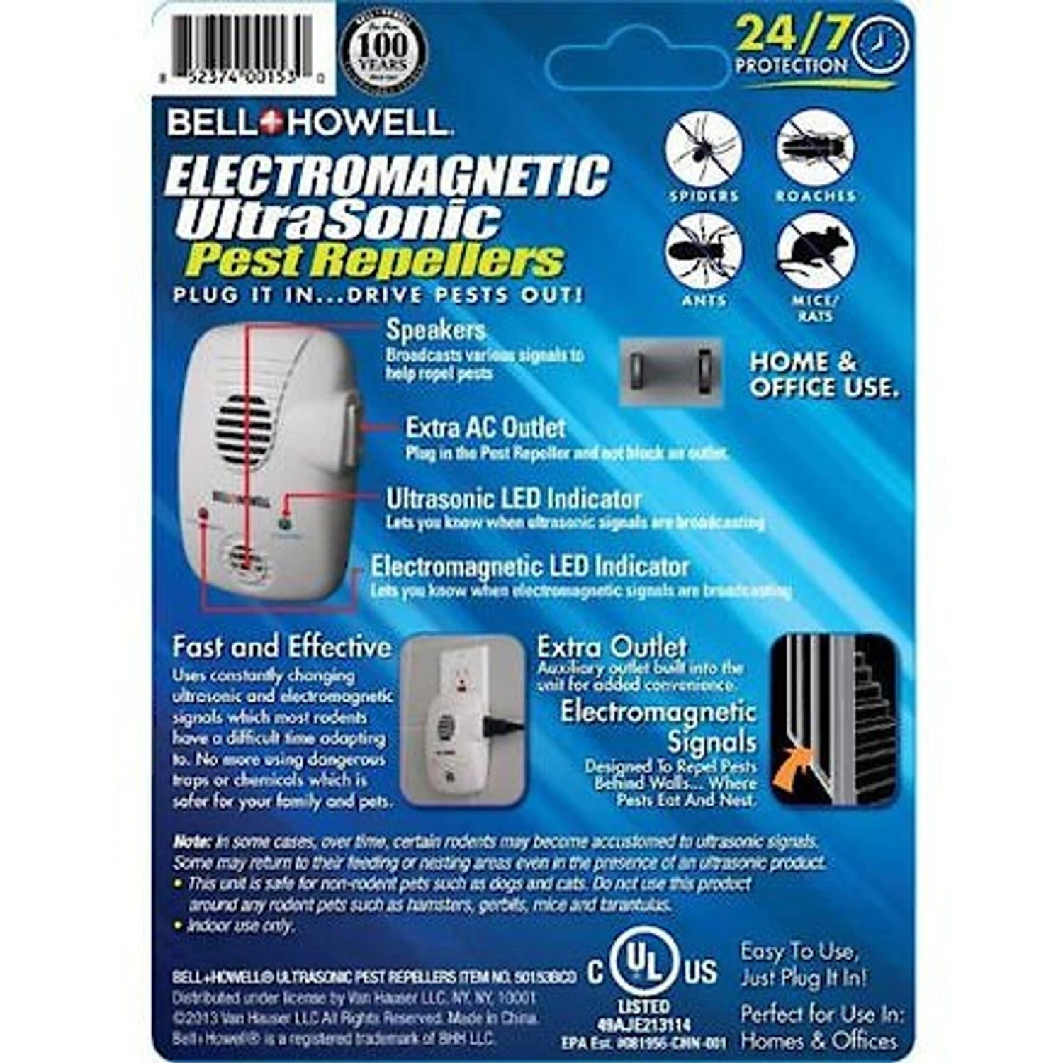 Help repel pests, without the mess! Bell + Howell’s Electromagnetic Ultrasonic Pest Repeller is a unique device that is designed to drive away ants, spiders, mice, rats, cockroaches and other rodents only using ultrasonic sound waves and electromagnetic waves. That means no unpleasant odors or dangerous chemicals to inhale and no messy, toxic sprays that may put your pet in danger. It works through wiring within walls sending a signal to deter pests. And the outlet feature on the side creates another spot for you to plug other electronics in while the Pest Repeller is plugged in! So, say “bye bye” to unwanted visitors by using Bill + Howell’s unique Ultrasonic Pest Repellers!