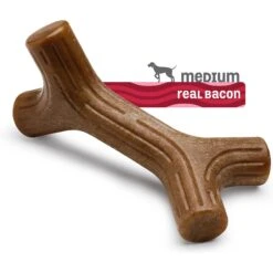 Help satisfy your sidekick’s chewing instincts with Benebone’s Bacon Stick Dog Chew Toy! This toy is made of nylon and has real flavor from bacon throughout—think of it as the amped-up version of a regular stick with no splintering or dirty mess. Made in the USA this chew toy comes in three sizes, so dogs from all barks of life can enjoy a Benebone. The dental chew has ridges to help scrub away plaque and tartar and because it’s designed with your paw-tner’s paws in mind, the unique shape offers him a good grip, so he can fully enjoy his new Benebone.