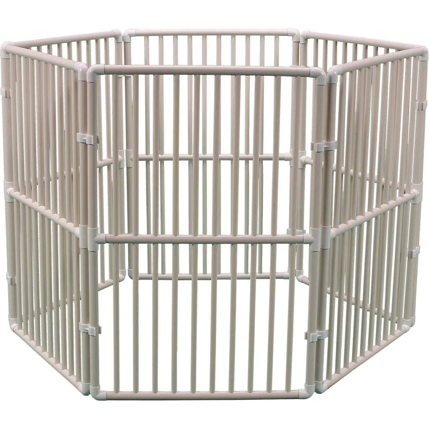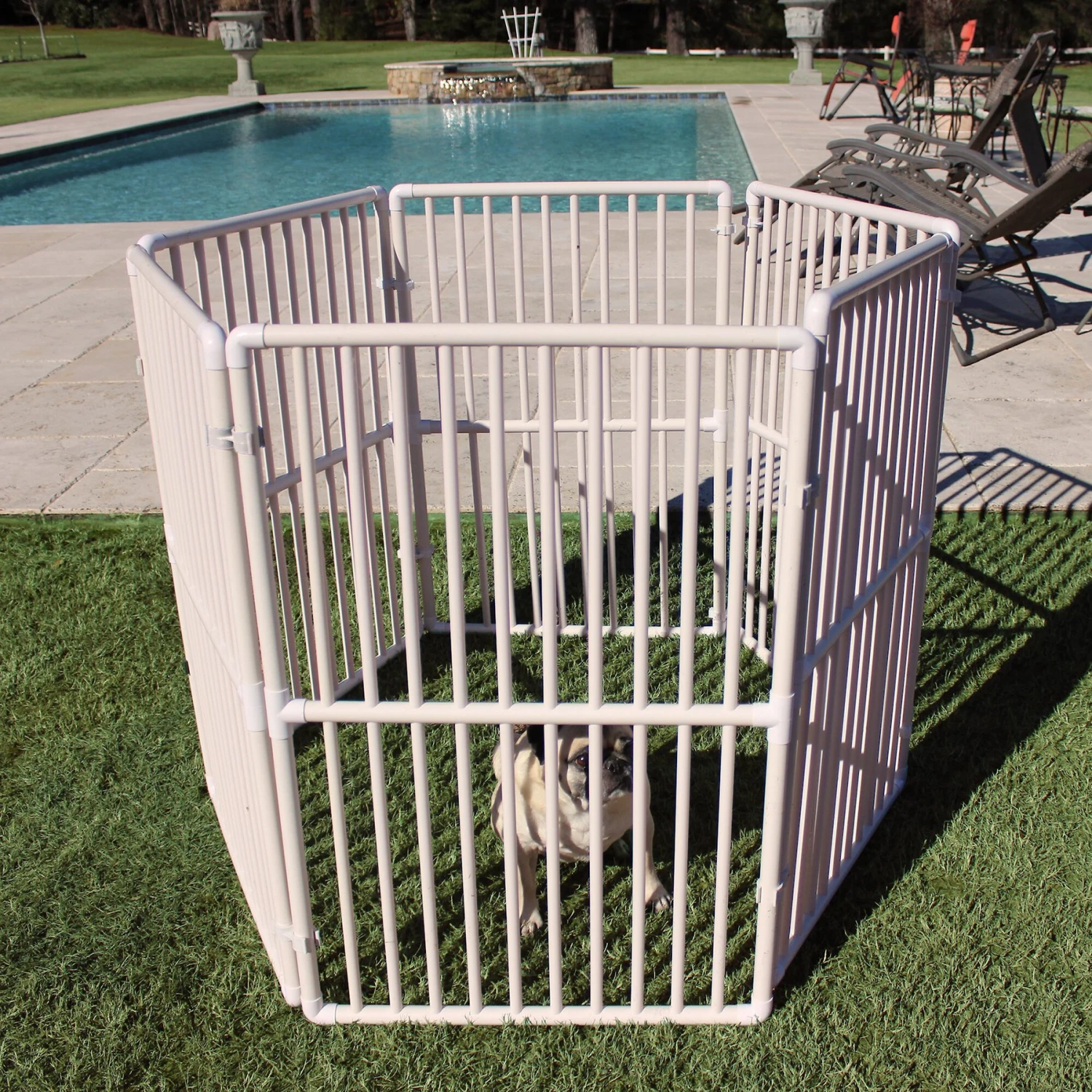 Treat your paw-some pupper to his very own outdoor play place with the Cardinal Gates White Portable Outdoor Pet Pen. It consists of six panels that each measure two feet by three feet and 12 connecting clips that simply snap together for effortless assembly. Constructed using sturdy, lightweight PVC, this outdoor pet pen is crafted to be weatherproof for the long-lasting enjoyment of your pet. You can configure it in multiple ways to meet your needs, including creating a taller pen for jumpers or a wider pen for increased lateral movement.
