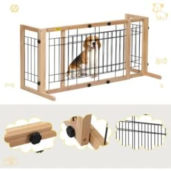 Keep your kids and your pets safe at home or on-the-go with the Coziwow Adjustable Freestanding Dog Gate! This contemporary gate is made from durable pinewood and metal wire mesh. It features a glossy finish, smooth surface, and side panels to help prevent tipping. It can expand from 39.8” to 71.2” to fit most stairways, doors, and hallways. If you’re looking for style and functionality, then this is the paw-fect gate for you and your family!