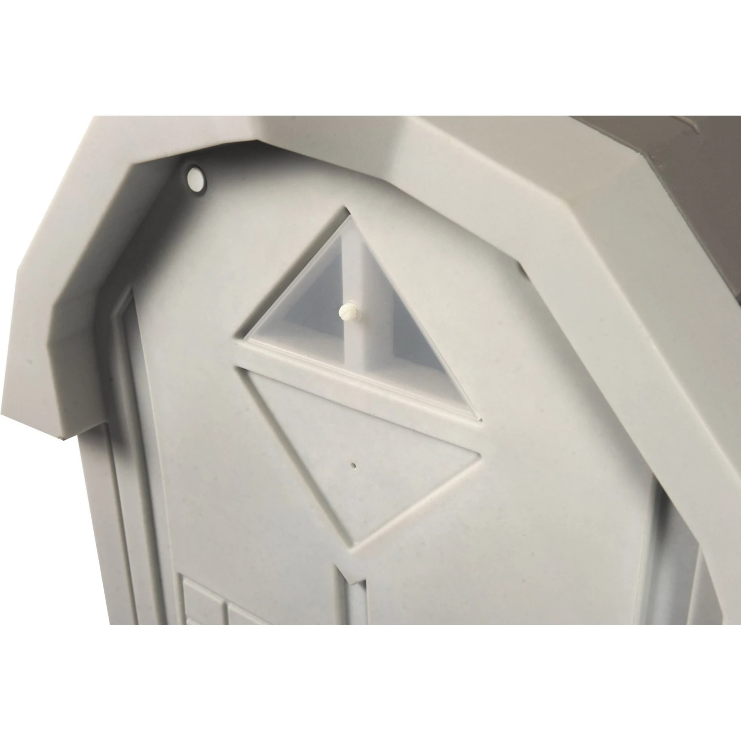 Help your dog weather the outdoor elements in style with the Dog Palace Insulated Dog House with Fleece Bed. This outdoor shelter was designed with all the comforts of home in mind. Each panel is made with two to four inches of insulation to help your pup keep warm or cool when it counts. Raised flooring and a swinging door offer a cozy spot to seek shelter from the rain. For a fresh breeze on a beautiful day, two easy-open windows provide added air flow. Place the included soft, weather-resistant fleece bed inside for the ultimate doggie den! This barn-shaped abode is pawfect for medium and large dogs with a shoulder height of 26.5 inches or less. Give your furbaby a comfy space for quick getaways—just a few short steps away from home sweet home!