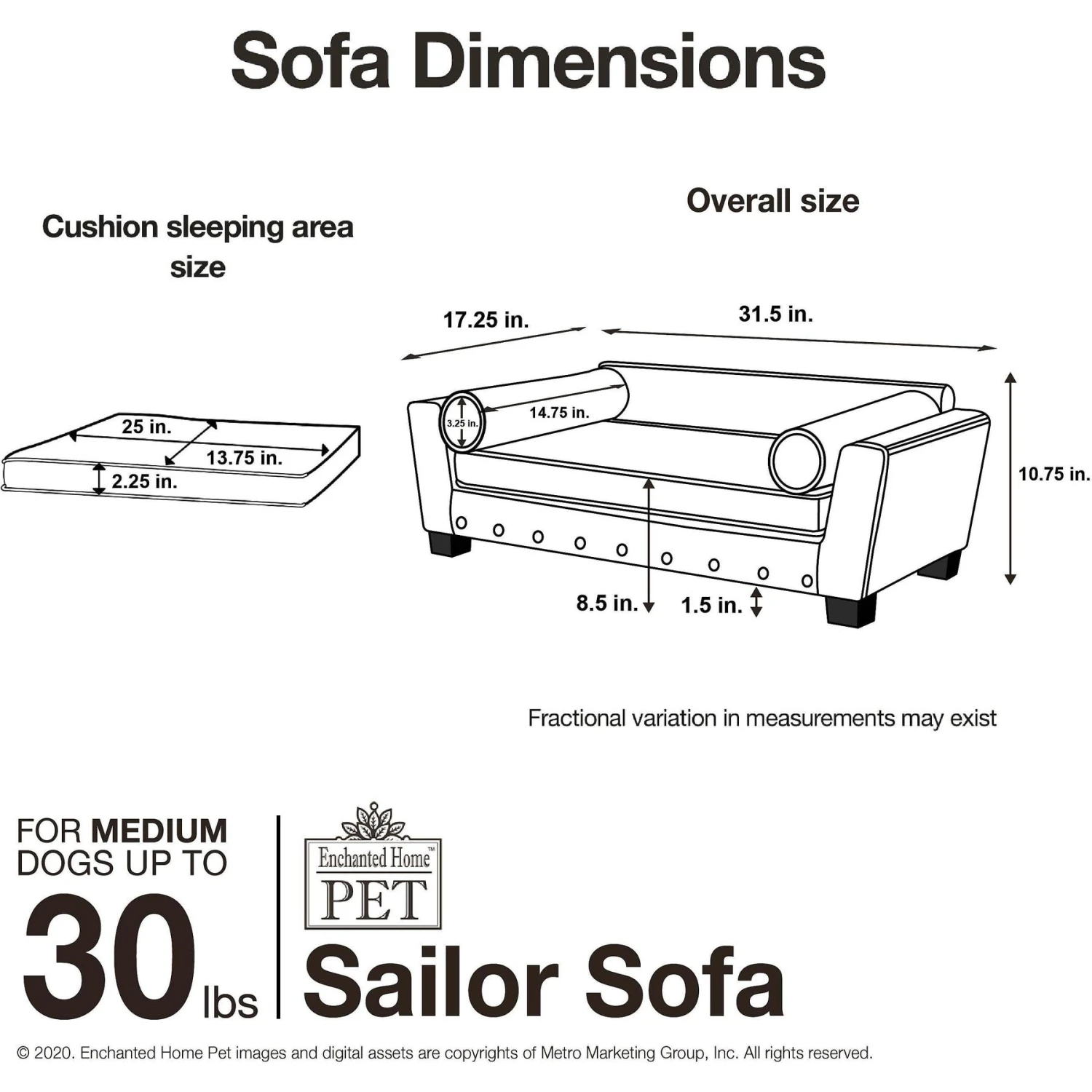 Clean lines, comfortable grey pebble faux-leather, an ultra-plush seat cushion, and silver nail heads—what more could you want in a pet bed? The Enchanted Home Pet Sailor Sofa Cat & Dog Bed with Removable Cover gives you and your darling pet all of those things. This bed also features two plush bolster cushions for the ultimate in lounge-ability—perfect for pets who want to stretch out while they snooze.