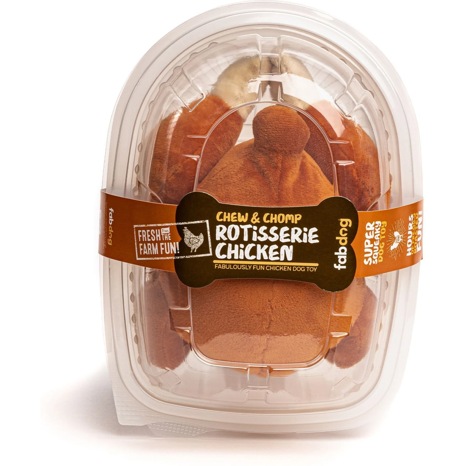 One roasted chicken, coming right pup—err, up! Cooked to perfection, your good girl will have finger-licking fun with the Rotisserie Chicken Dog Toy. From its peppy squeaker to its cozy softness, this chicken will help entertain your fun-loving pup all morning.