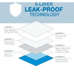 - Made with a six-layer, leak-proof system that draws fluid to the core and locks in moisture.