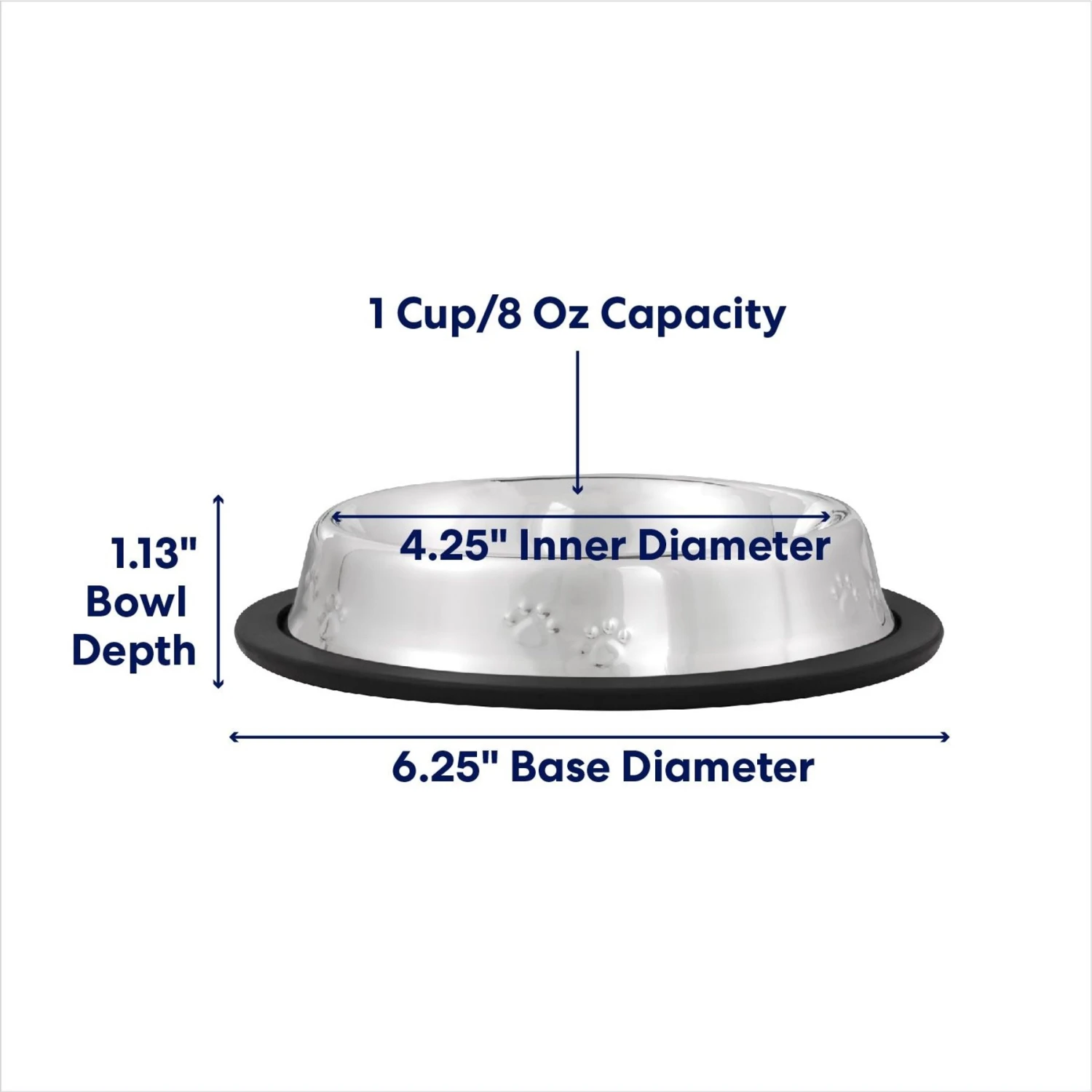 Serve up dinner in style with the Frisco Non-Skid Stainless Steel Pet Bowl. The smart design helps keep kibble in its place—in the bowl—and features a wide rubber base that keeps it from tipping, even if your pal is extra hungry. Stainless steel is stain-proof and easy to clean by hand or in the dishwasher. Plus, the adorable embossing adds a stylish touch.