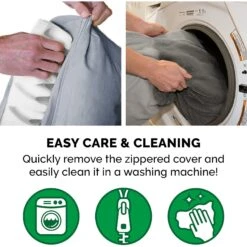 Cover: For best results, remove filling (core). Zip close. Shake off any loose debris from cover before washing. Hand or machine wash separately; cold water. Do not bleach. Line dry or tumble dry low. Please see hang-tag for core (stuffing) content and care instructions.