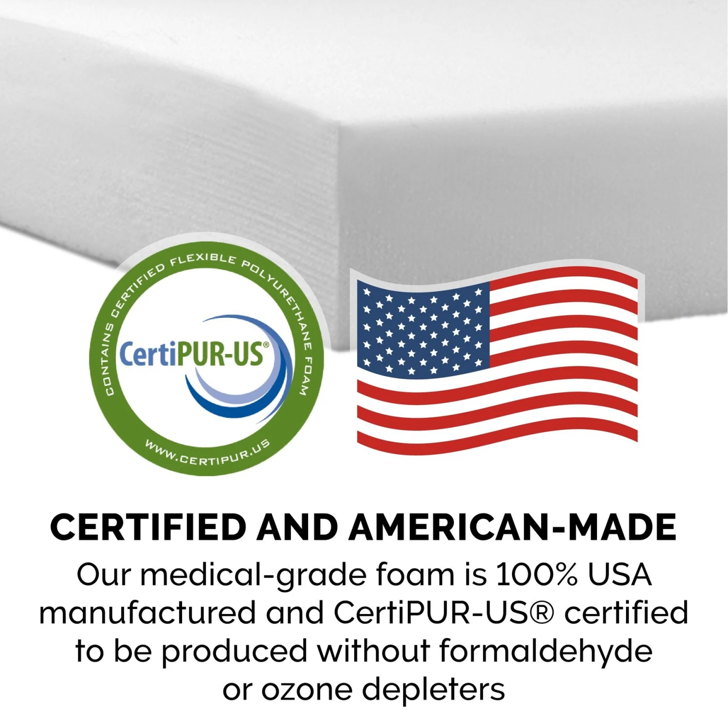 - Foam is 100% manufactured in the USA and independently tested to meet CertiPUR-US standards for emissions, content, and durability.