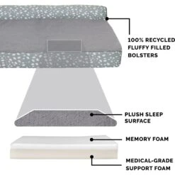 - Fluff-filled bolster railings support the neck, back, hips and joints to help ease discomfort and encourage restful sleep.