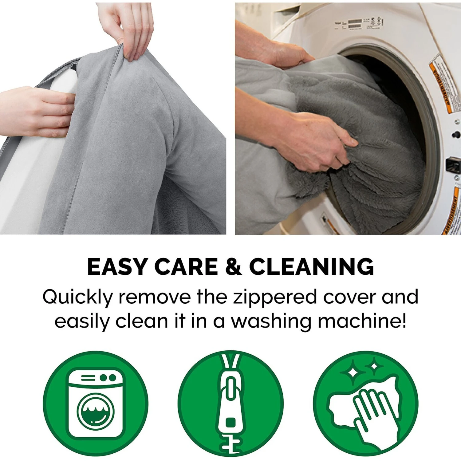 - Zippered cover is easily removed and machine washable.