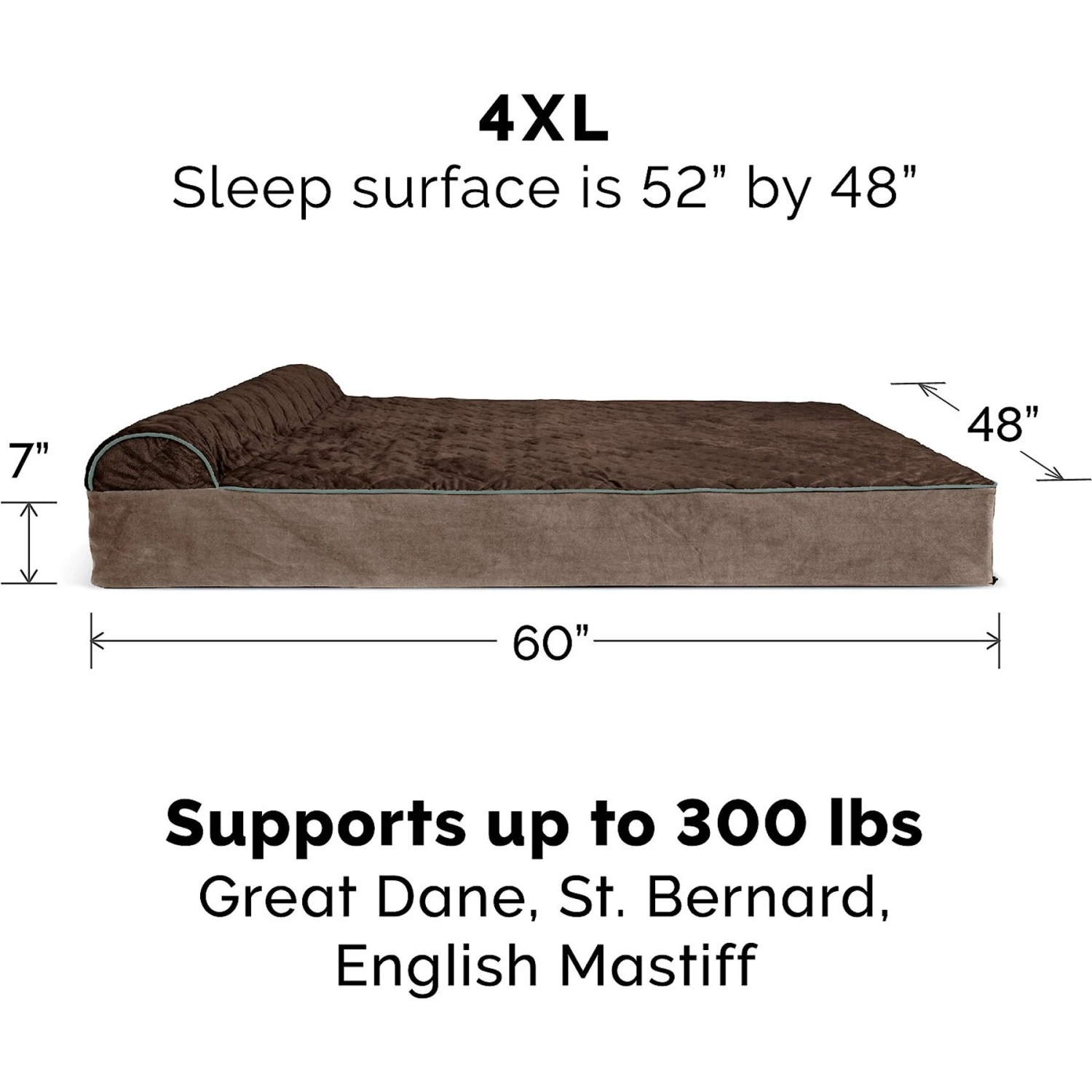With the Quilted Faux Fur & Velvet Goliath Chaise dog bed by FurHaven, your large dog can truly sail off to dreamland in luxury. Specially tailored for your large breed dog, this chaise-style bed won’t let your big guy down like other beds might—that’s because the Goliath is built to be a comfortable, supportive pillow for dogs up to 300 pounds. It’s got 7-inches of medical-grade orthopedic foam beneath its ultra-plush faux fur exterior, building it for big comfort from the inside and out. The irresistible foam relieves aching joints, prevents painful pressure points, and bolsters your pet’s neck and spine as he happily snoozes the hours away. Plus, the cushy sleeping surface feels oh-so-nice on delicate paws and noses! With three varied sizes and two distinct color options, you can choose the Goliath that’s paw-fect for your furbaby and your home’s individual style.