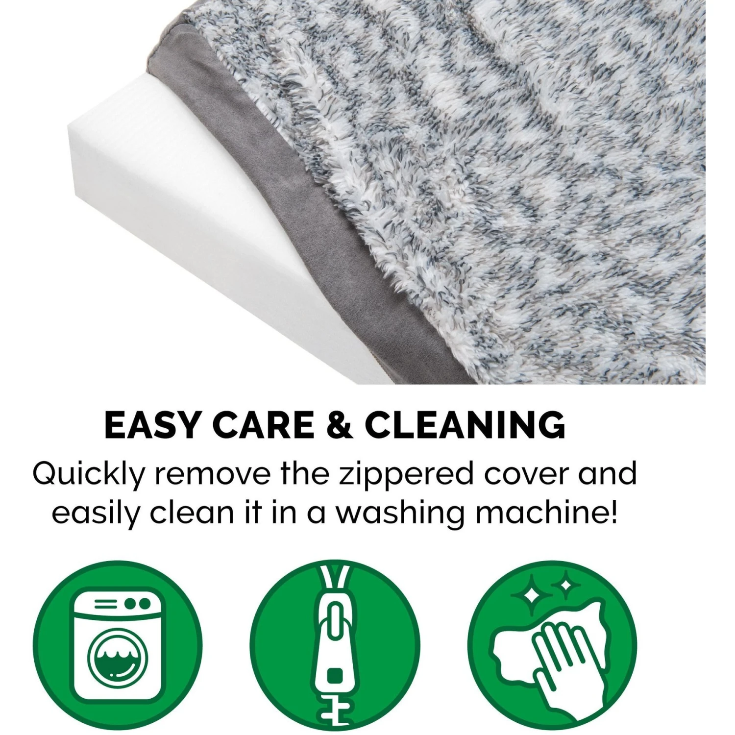 - Zippered design with machine washable fabrics.