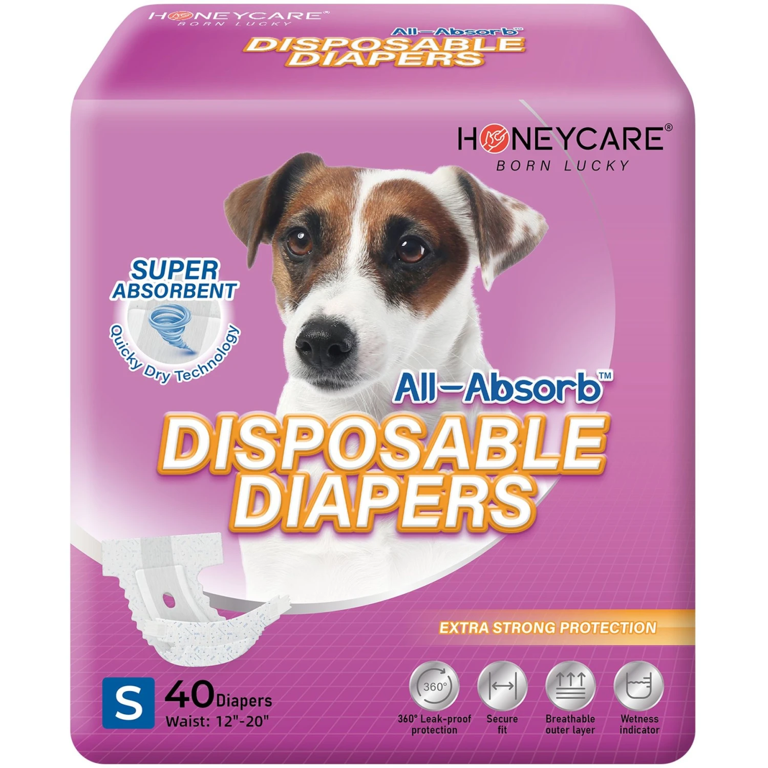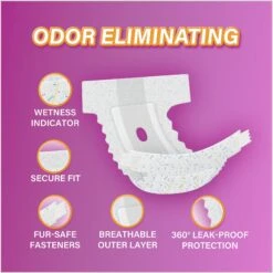 Provide your pet with protection when nature calls by dressing her in All-Absorb’s Super Absorbent Disposable Female Dog Diapers! They are paw-fect for dogs with incontinence, in heat or who suffer from excitable urination. Your furry friend will be able to walk with ease thanks to the flexible comfort these diapers have to offer and thanks to the fur-safe closures, she won’t have to worry about them tugging on her coat! These female diapers are extra absorbent and designed with leak-proof protection barriers to help stop your canine’s pee from running free. They also have a convenient wetness indicator, which changes color when it’s time to change her diaper. So, strap your sidekick up and let the worry-free wandering begin!