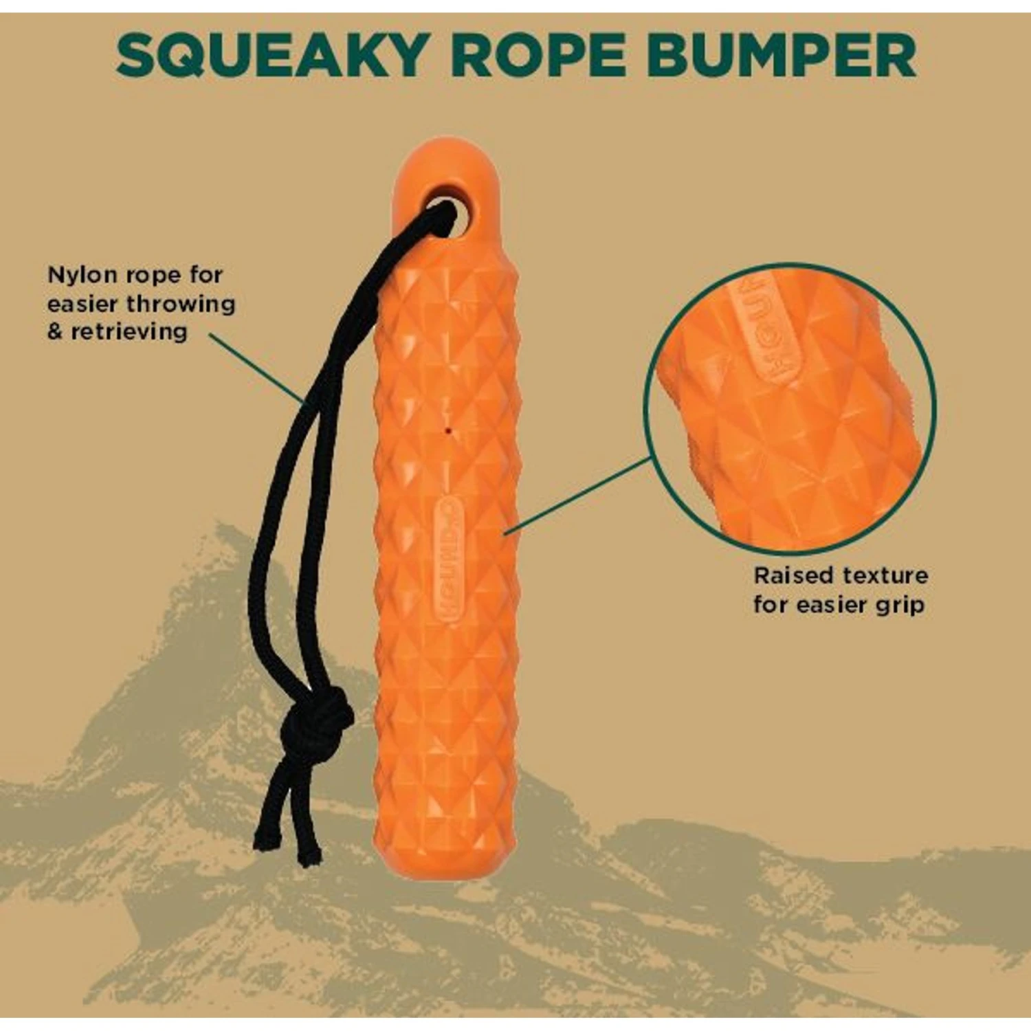- Hound2O’s durable Rope Bumper has an engaging squeak and is designed to float, so you can take your next game of fetch to the pool, lake or beach!