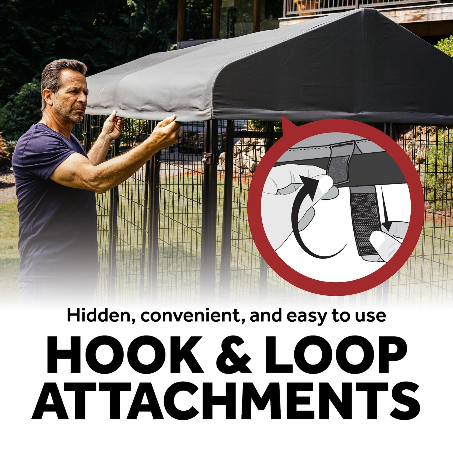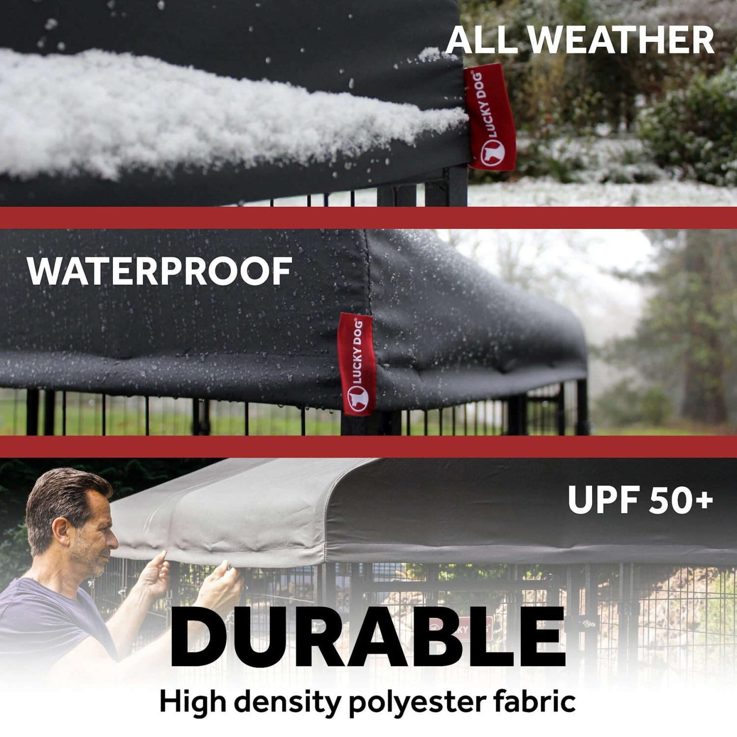 The Lucky Dog STAY Series Studio Jr. Kennel combines quality with luxury to provide your pup with the very best. This kennel has a sleek and durable design with a long-lasting steel frame that has a powdered coated finish. It features a waterproof polyester cover that offers your furry friend UPF 50+ protection and ultimate comfort! The cover also includes hidden hook and loop attachments. This premium kennel is sure to compliment any yard!