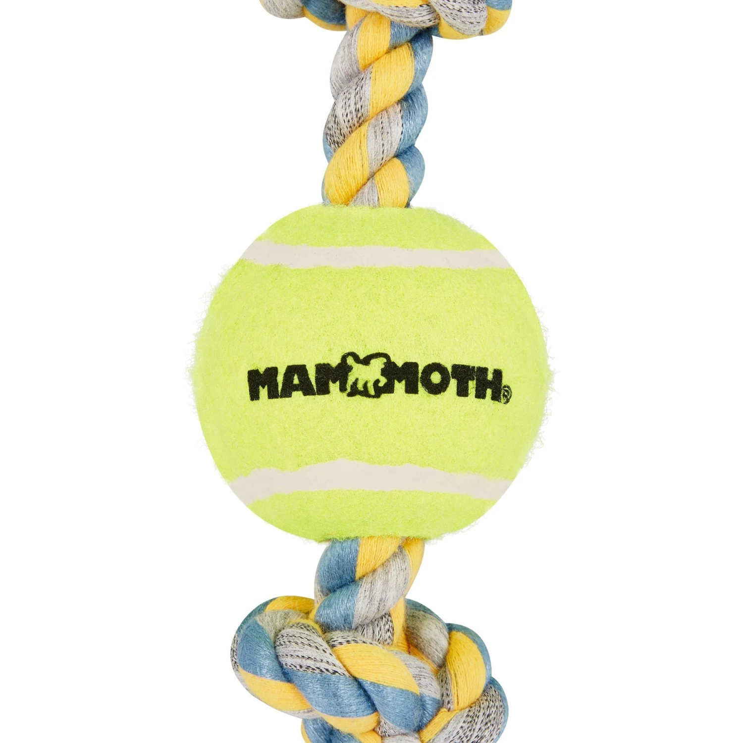 Toss, tug, and floss! Mammoth rope toys are made from premium materials in fun shapes and colors for dogs of all sizes. Denim rope fibers clean dogs’ teeth as they chew and play. Rope fibers floss dog’s teeth as they chew and play. Safe, long lasting great for games, fetch and play. Built strong to chew and play for hours, perfect for teething puppies.