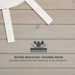 - Made with high-quality components — water-resistant stained wood, stainless-steel hardware and asphalt-shingled roof.