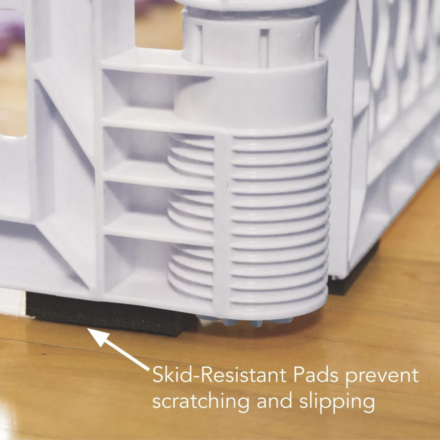 Help keep your paw-fect pooch safe indoors and outdoors with the Plastic Dog Pet Yard from MyPet! This high-quality, six-panel yard encloses up to 18.5 square feet and is 26 inches high. Setting it up is easy. The six interlocking panels are pre-connected—simply pull the panels out of box, unfold and connect them together. It comes complete with skid-resistant pads that work on any surface and won’t slip or scratch. This pey yard includes a convenient carry handle, which makes this lightweight yard easy to take anywhere. Want to increase the area? A Two-Panel Extension is sold separately. Safety and containment all wrapped up in one gate—how simple!