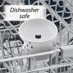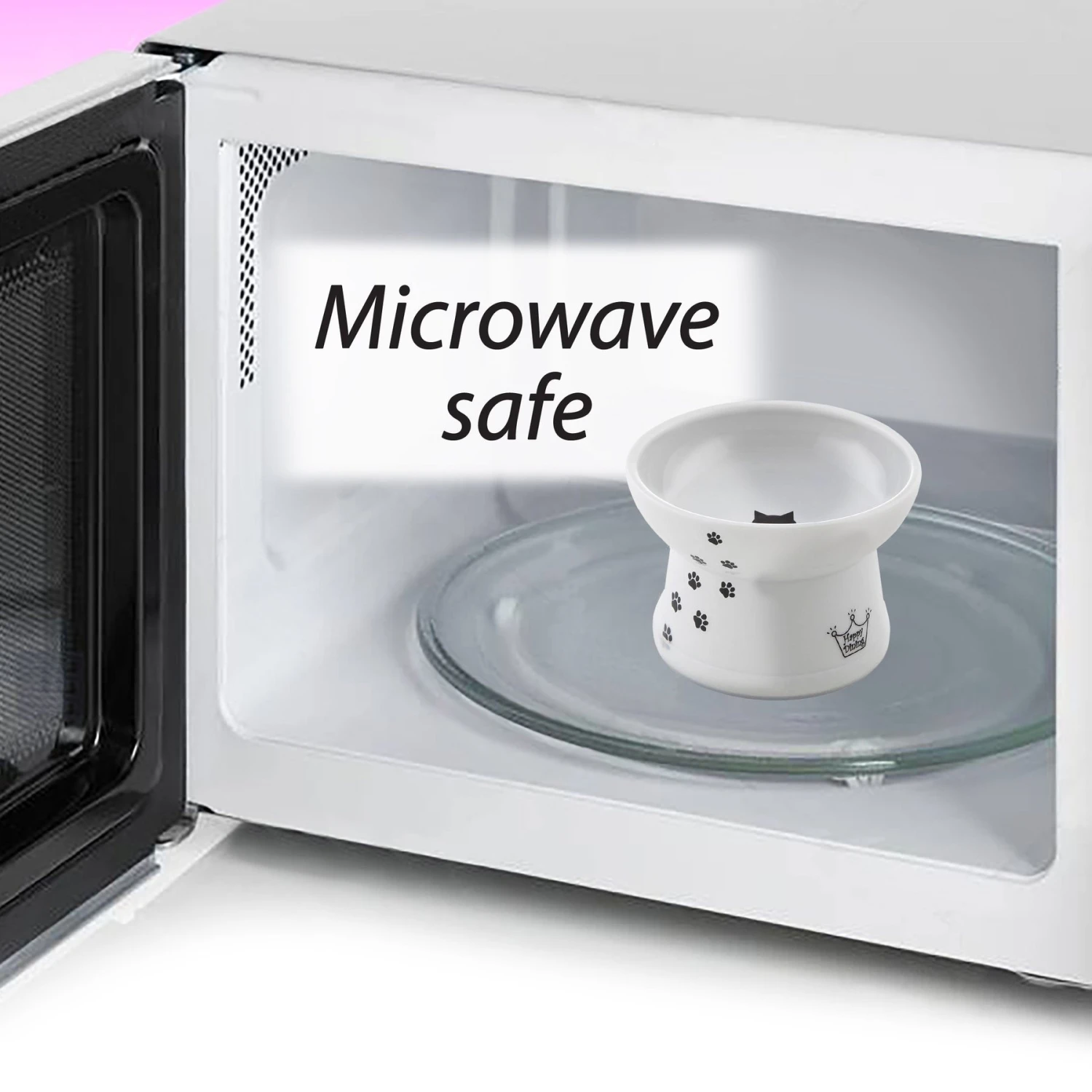 Happy Dining Raised Food Bowls are both dishwasher and microwave safe. Multiple-cat owners can appreciate the convenience of simply tossing all of the food and water bowls into the dishwasher and flipping on the switch.
