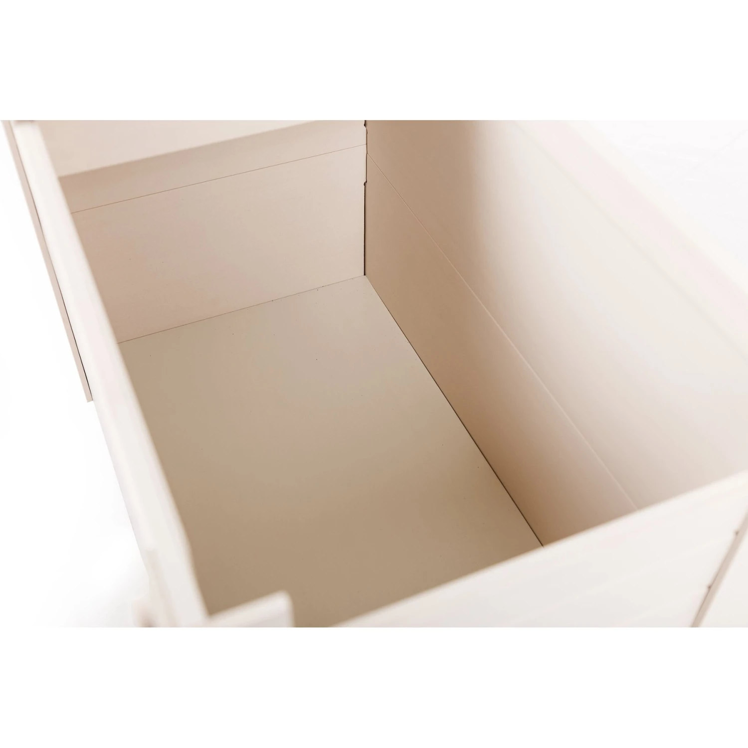 - Lid top slides open and latches closed for storage.