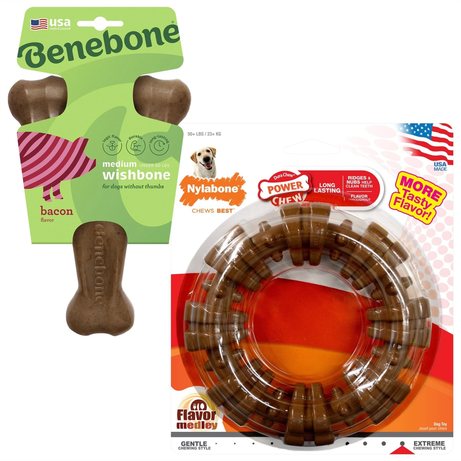 Benebone Bacon Flavor Wishbone Tough Dog Chew Toy, Medium—Benebone’s Wishbone Chew isn’t your dog’s average chew toy. Made in the USA from durable nylon and real USA-sourced bacon throughout, the ergonomic wishbone will keep your dog chewing with delight! Each prong has deep flavor grooves to keep him interested and the unique, paw-friendly shape makes gripping extra easy. As if that wasn’t enough, with your purchase you’ll also be supporting animal welfare nationwide as a portion of all Benebone sales are donated to animal support organizations!