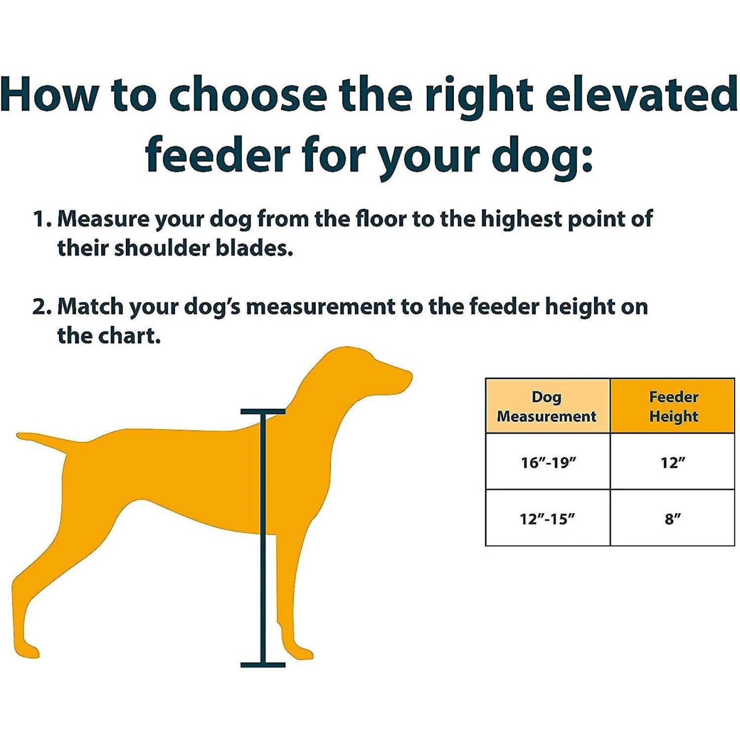- 8-inch bowl works best for small to medium dogs and has a spill ridge to keep food and water off the floor.