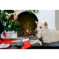 Treat your furbaby to the P.L.A.Y. Pet Lifestyle And You Merry Woofmas Set Plush Squeaky Dog Toy for an extra special howl-iday season. Being good all year can be ruff, so reward your best friend with the toy he deserves. These cheerful holiday toys include a stocking, tasty plate of cookies, ornament-filled Christmas tree, tuggable elf and silly Santa dog toy. Each toy has squeakers or crinkles for paw-some playtime.