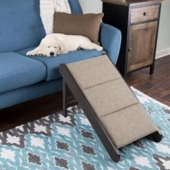 Give your four-legged friend the ability to safely go wherever you do with the Pet Adobe Foldable Wooden Dog & Cat Ramp. This ramp is perfect for puppies, small dogs, senior dogs, cats, and injured or arthritic pets, providing them with a secure walking surface up to 80 lbs. The ramp features a nonslip fabric and locking mechanism, so your pet can easily access beds, couches, vehicles, and more. Plus, it’s lightweight and folds up for easy storage or travel.