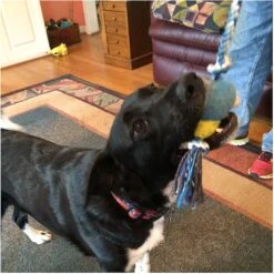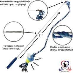 - Included squeak toy keeps your pooch excited and the double-woven rope tether is great for tugging.