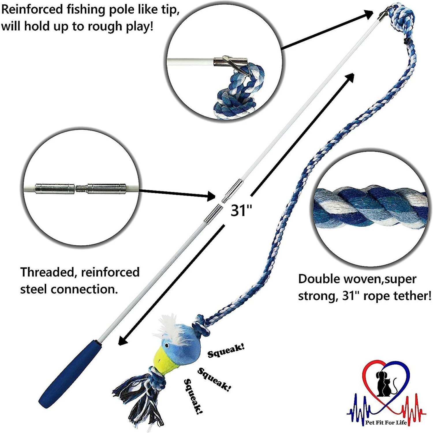 Get into some squeaking fun with your pooch with the Pet Fit For Life Plush Wand Teaser Dog Toy. Made with a lightweight yet super-strong and flexible polycarbonate pole and built with a threaded, reinforced steel connection, it can stand up to extra rough play with the most energetic pups. Just wave it about and let your pal go wild chasing after it. The double-woven rope tether is durable enough for tugging while the included squeaky duck toy keeps your pooch engaged in play—not to mention all that much-needed exercise. It’s action-packed playtime you can take anywhere, even right from your couch!