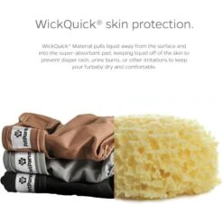 - Su-paw absorbent pads increase with diaper size, because bigger pups need more protection, and are sewn in so you don’t have to touch them.
