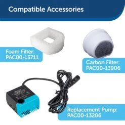 Creekside Ceramic Pet Fountain, Replaceable Carbon Filter, Replaceable Foam Filter, Quick Start Guide