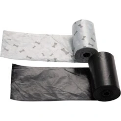 - Clean up after your pup with these convenient rolled waste bags.