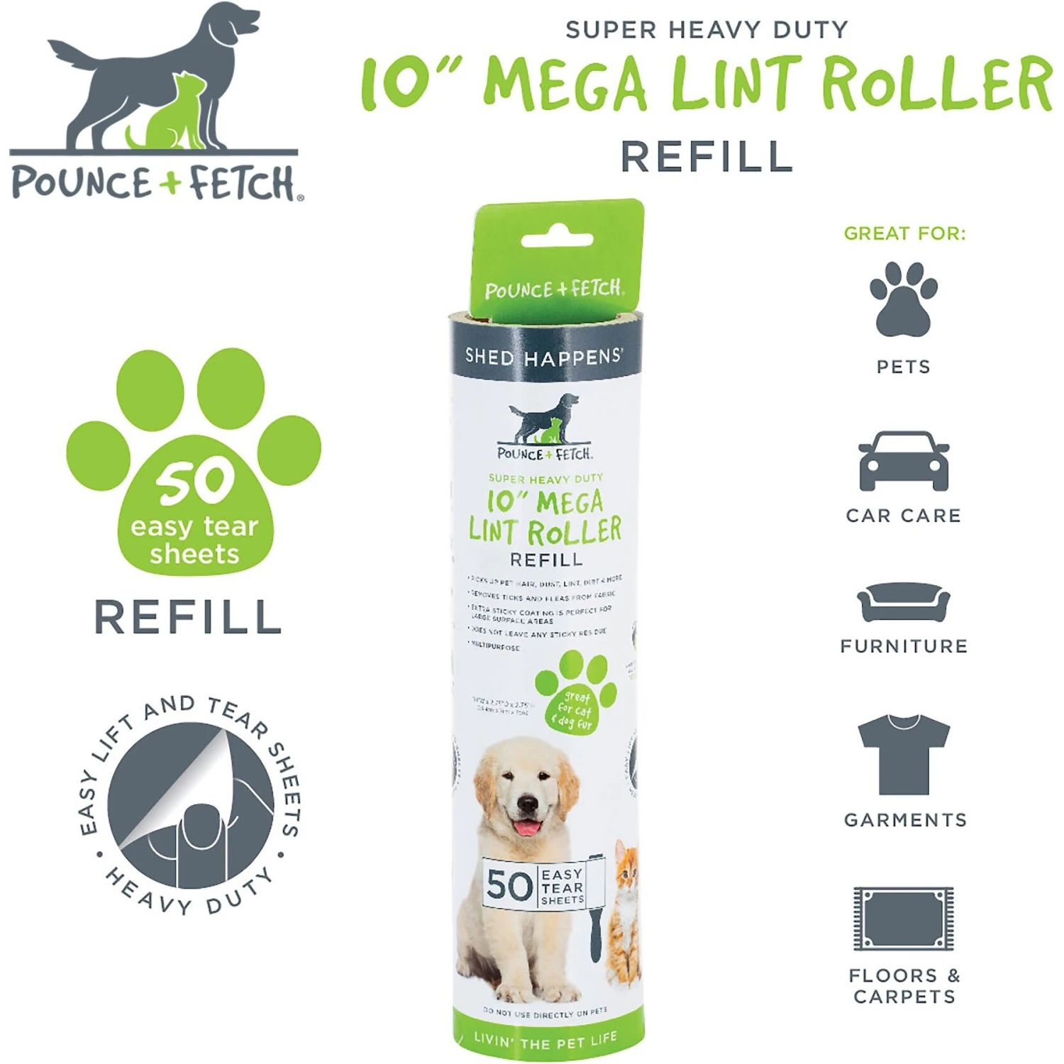 Clean up the messes your furry friend leaves behind in a jiffy with a Pounce & Fetch Mega Lint Roller Refill. This paw-some lint roller refill is made to fit the Pounce & Fetch Mega Lint Roller (sold separately). Purr-fect for your clothes, car, furniture and carpet, the refill comes with plenty of super-sticky sheets to pick up hair, lint and more. It includes masking paper to pick up pesky pests like fleas and ticks. Plus, it won’t leave behind a sticky residue.