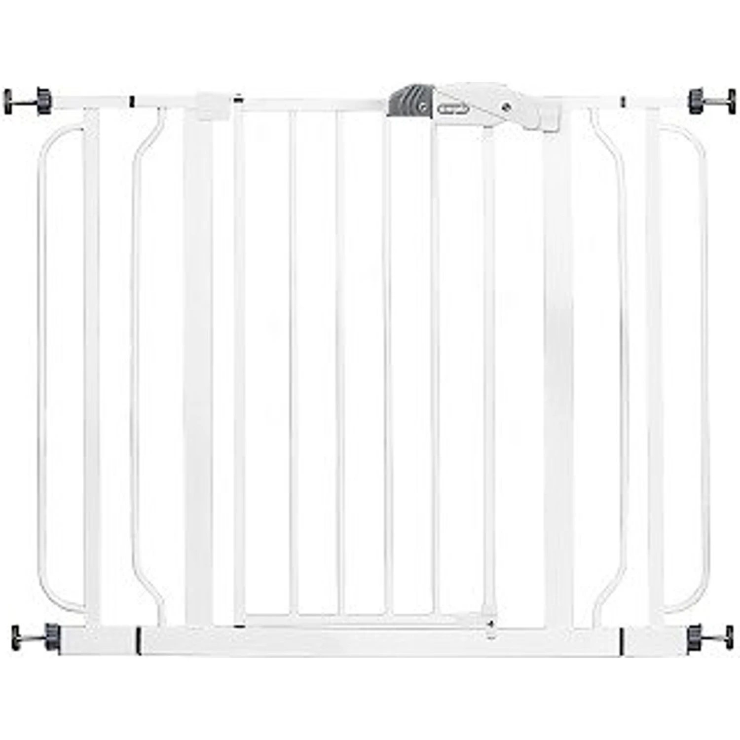 Keep your furry friend safe and sound with the Regalo Easy Step Extra Wide Walk-Through Gate. Made with all-steel construction, it measures 30 inches in height and expands to fit openings between 29 and 41.5 inches with two included 4-inch extensions. This gate pressure mounts for easy installation and comes with hardware to mount to your wall for more stability. It also features a convenient walk-through design with a one-touch release safety lock so you can get by but your paw-tner cannot. Ideal for medium to large dogs, Regalo Easy Step Extra Wide Walk-Through Gate will keep your companion contained.