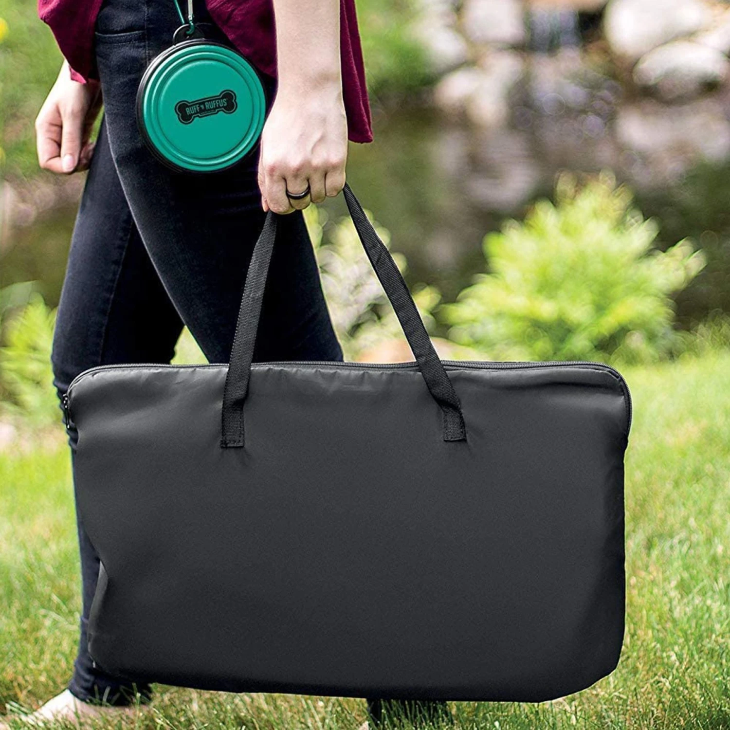 Keep your best fur-iend safe while on-the-go with the Ruff ‘N Ruffus Portable Foldable Cat & Dog Playpen, Carrying Case, & Travel Bowl! This contemporary, portable playpen is made from durable, water-resistant materials. It features a carrying case and a collapsible 16 oz. travel bowl for added convenience. It features a removable zippered roof and door for safety and visibility. It also features a roomy eight-Panel design with protected seams and reinforced corners for added strength and durability. When not in use, it folds up to a small, lightweight package that can easily be transported or stored away. If you’re looking for style and functionality, then this is the paw-fect playpen to jet-set around the world with your furbaby!