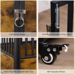 The SMONTER Wooden Furniture Style Dog Crate is su-paw stylish, so it will be right at home in your living room, bedroom, apartment or office. The furniture-style crate is a paw-some solution to improve your space usage while blending in with your home décor. Use it as a large-capacity end table and put vases, books and other items on it. High-quality particle board and anti-chewing steel tubes make it a durable, sturdy haven for your furbaby. Internal latches and upgrade locks make it difficult for even the most talented escape artist to open the door. Four locking casters make it easy to move the crate around for more convenient room cleaning, and you can press the pedal to lock the casters into place.