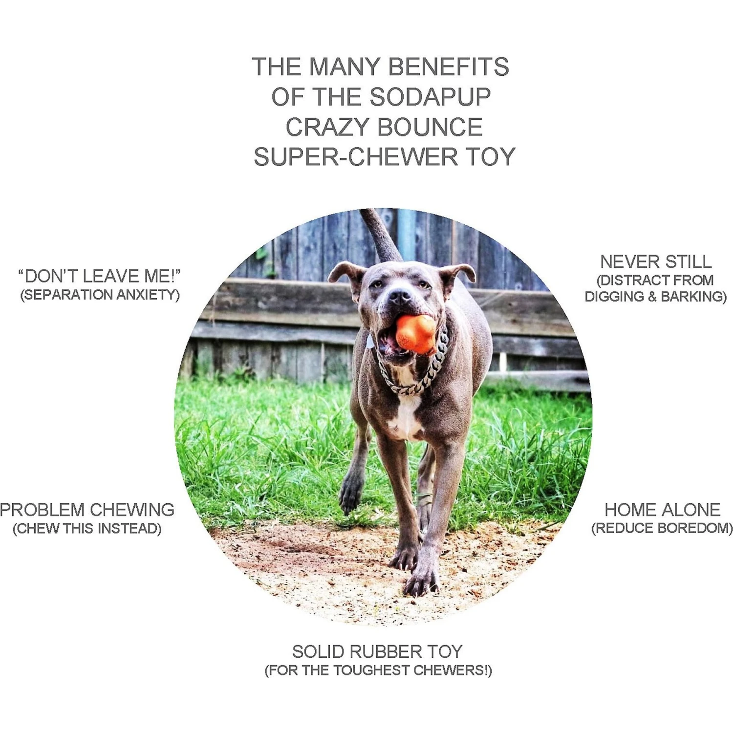 Make playtime even wilder for your pup with the SodaPup Crazy Bounce Rubber Chewing & Retrieving Dog Toy. This toy’s unique design gives it an erratic bounce, making it a stimulating and entertaining toy that is perfect for fetch. Made from SodaPup’s ultra-durable Magnum materials, it offers high tear strength and durability to accommodate even the strongest, most spirited chewers. Plus, the sustainably harvested, all-natural rubber compound used in this toy is FDA-compliant and non-toxic so it’s as good for the earth as it is for your dog’s good spirits!