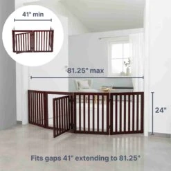 TRIXIE’s Convertible Wooden Dog Gate is not only a pet gate, but it can also function as a room divider, and a pet pen! It features a beautiful wood finish and is designed with non-slip rubber feet to help keep it in place and protect your floors and carpets. It also has a convenient walk-thru door that’s safe for smaller pets to use, too. Assembly required with all hardware included.