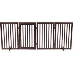 TRIXIE’s Convertible Wooden Dog Gate is not only a pet gate, but it can also function as a room divider, and a pet pen! It features a beautiful wood finish and is designed with non-slip rubber feet to help keep it in place and protect your floors and carpets. It also has a convenient walk-thru door that’s safe for smaller pets to use, too. Assembly required with all hardware included.
