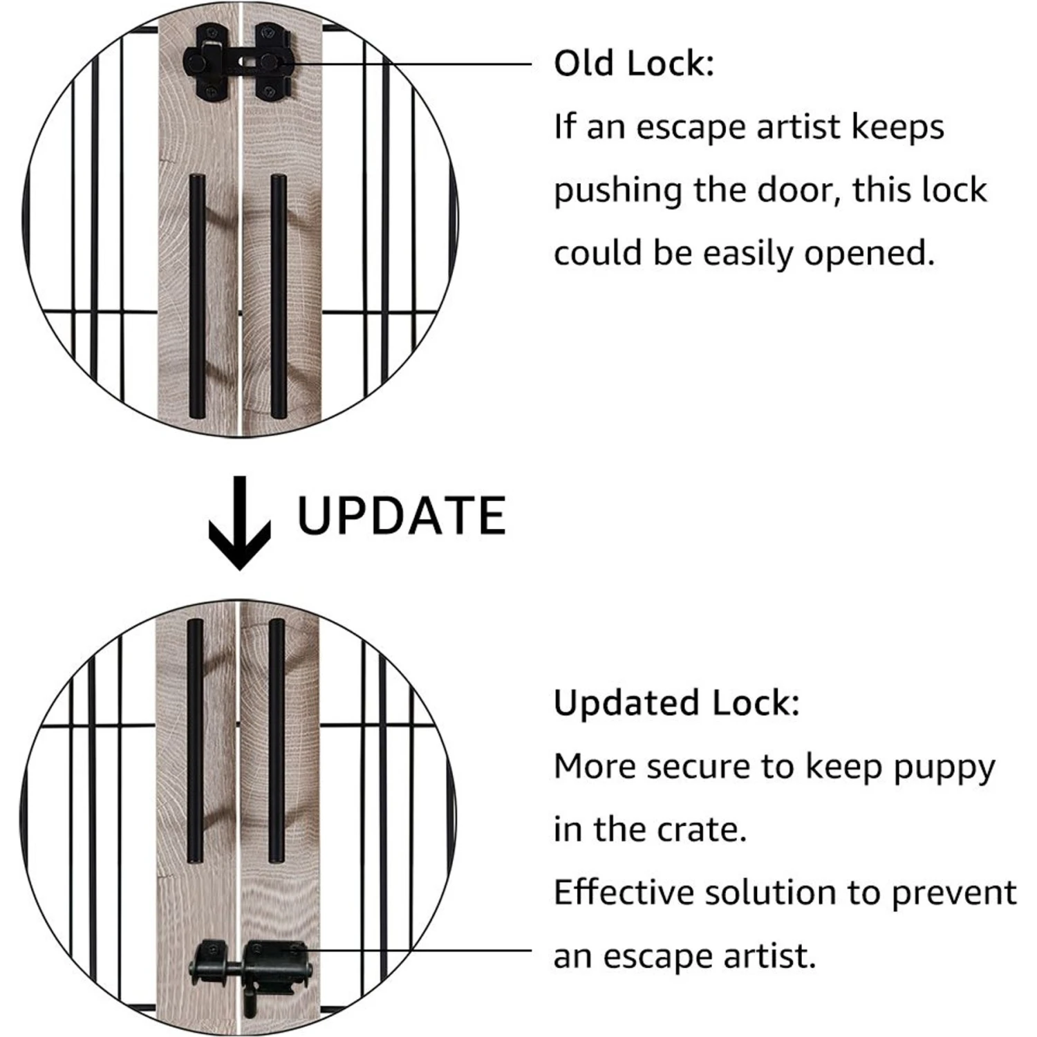 Create the paw-fect place for your pet to snooze with a Unipaws Wooden Wire Furniture End Table Dog Crate. This cozy dog crate doubles as a stylish end table for your home. It features a single door on the side and double doors on the front that lock for easy accessibility and security. The wide top of the crate is a great spot for plants, picture frames, books and more. Your pooch will appreciate the included removable soft bed to curl up on after a day of tail-wagging fun.