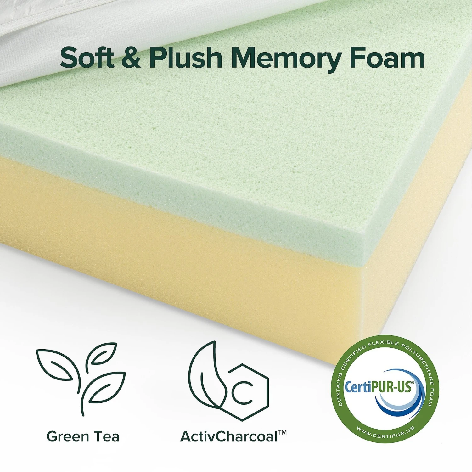 - Crafted with odor-eliminating green tea memory foam.